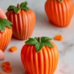 - Dip the Strawberries: Hold each strawberry by the green leaves and dip it completely into the melted orange chocolate, allowing any excess chocolate to drip off before placing it on wax paper.