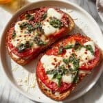 This Air Fryer Pizza Margherita recipe offers a quick, delicious twist on the classic Italian pizza using fresh mozzarella, ripe tomatoes, and basil layered between buttery sourdough bread slices. Cooked to golden perfection in the air fryer, it’s a perfect 18-minute meal for two that’s crispy on the outside and melty inside.