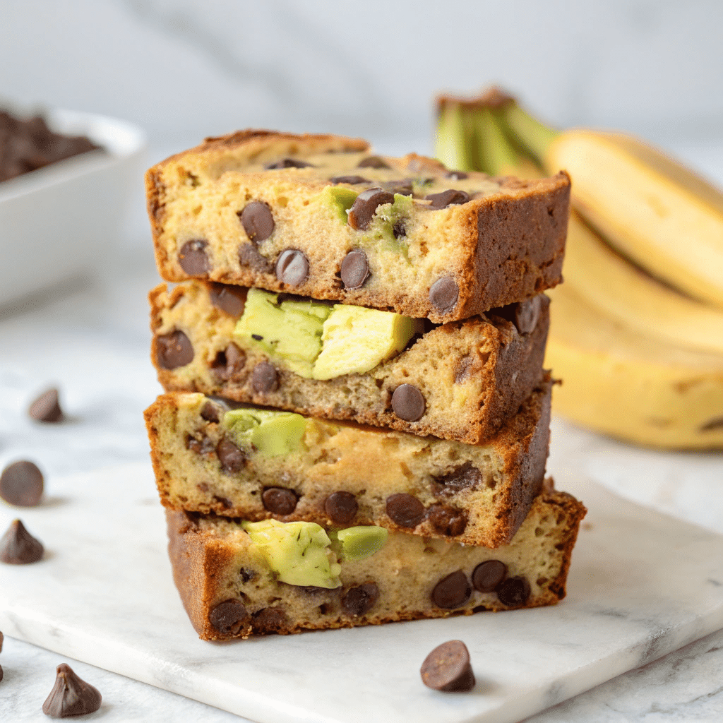 This Avocado Banana Bread is a moist and delicious twist on classic banana bread, featuring ripe avocados to add creaminess and healthy fats. Perfect as a breakfast treat or snack, this recipe combines the natural sweetness of overripe bananas with the subtle richness of avocado, enhanced with sugar and optional chocolate chips or nuts for extra flavor and texture.