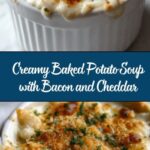 This comforting Baked Potato Soup recipe combines creamy potatoes, melted cheddar cheese, crispy bacon, and a flavorful onion-garlic base to create a rich and hearty soup perfect for cozy meals.