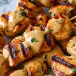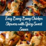Delicious and easy Bang Bang Chicken Skewers featuring tender grilled chicken pieces coated in a creamy, spicy sweet chili sauce, perfect for a flavorful appetizer or main course with a touch of Asian-inspired American fusion.