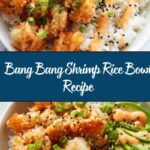 This Bang Bang Shrimp Rice Bowl recipe offers a deliciously crispy and spicy shrimp served over a bed of fluffy rice and fresh vegetables. The shrimp are coated in panko breadcrumbs and fried to golden perfection, then tossed in a creamy, zesty Bang Bang sauce made with mayo, chili garlic sauce, and Thai sweet chili sauce. Topped with avocado, edamame, carrots, cucumber, fresh cilantro, and lime wedges, this bowl combines bold flavors and satisfying textures for a vibrant, flavorful meal.