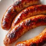 Reheat leftovers gently in the oven or on the stovetop until warmed through. This helps keep the sauce thick and the sausages juicy, unlike microwaving which can sometimes dry them out.