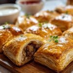 Place each assembled bite seam side down on your prepared baking sheet. Brush the tops with the beaten egg wash to achieve that gorgeous, shiny golden brown crust as they bake. For best shape and ease of baking, chill the wrapped bites in the refrigerator for about 15 minutes before baking. Pop them into the preheated oven and bake for 12 to 15 minutes, until the puff pastry is puffed and golden. Allow the bites to rest for about 5 minutes before serving to let the juices settle inside. Instead of the traditional slice and serve, these convenient, elegant bites are ready to wow your guests instantly!