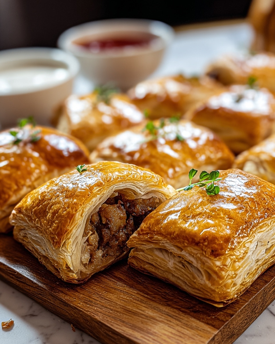 Presentation is everything when serving Beef Wellington Bites Recipe. Arrange the bites neatly on a decorative platter, perhaps lining the plate with fresh herbs or edible flowers for a festive flair. For a casual vibe, serve them with toothpicks or mini skewers for easy grabbing. They’re also stunning stacked in a pyramid shape or nestled in small ramekins alongside complementary dipping sauces for an interactive tasting experience.