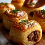 - Bake: Bake in the preheated oven for 15-18 minutes until the puff pastry is golden brown, crisp, and beef is cooked to medium-rare or desired doneness.