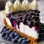 - Top with Blueberries and Garnish: Once set, spread the remaining blueberry pie filling over the top of the pie. Optionally, decorate with whipped cream and fresh blueberries before serving.