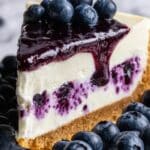 This Blueberry Swirl Cheesecake features a buttery graham cracker crust, a creamy cream cheese filling with vibrant blueberry swirls, and a smooth sour cream silky topping. The luscious combination of tangy blueberries and rich cheesecake makes it a perfect dessert for special occasions or any day you crave a delightful treat.