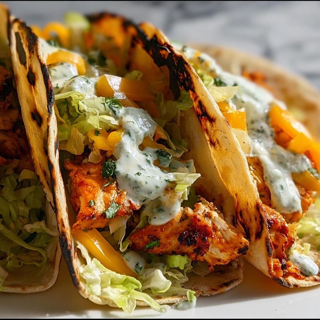 The freshness of the garnishes can elevate these tacos from tasty to truly unforgettable. Crisp shredded lettuce adds a light crunch, while creamy ranch or blue cheese dressing cools and complements the heat. A sprinkle of green onions finishes the tacos with a subtle onion flavor that brightens every bite. Don’t be shy to drizzle a bit more Buffalo sauce for an extra fiery kick.