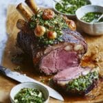 - Serve: Spoon the mint and pistachio relish generously over the rested lamb and serve immediately, enjoying the harmonious blend of tender meat and vibrant, fresh relish.