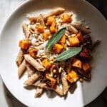 A comforting and flavorful Butternut Squash Sage Pasta combining roasted butternut squash with a nutty brown butter sage sauce, whole wheat pasta, and a touch of Parmesan. This autumn-inspired dish is easy to prepare, hearty, and perfect for a cozy meal.