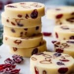 These Buttery Cranberry Almond Shortbread Cookies combine a rich, tender crumb with the tartness of dried cranberries and the crunch of toasted slivered almonds. Perfectly sweetened with powdered sugar and enhanced with a hint of almond extract, these cookies make a delightful treat for any occasion.