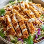A crunchy and flavorful Caesar Slaw with crispy pan-fried chicken breasts, combining fresh shredded cabbage, carrots, celery, and a tangy Caesar-inspired dressing for a satisfying meal that’s perfect for lunch or dinner.