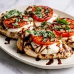This Caprese Chicken recipe combines juicy grilled chicken breasts with fresh mozzarella, ripe tomatoes, and fragrant basil, finished with a drizzle of aged balsamic glaze. Perfect for a quick, flavorful, and healthy 25-minute meal that brings the classic Italian Caprese salad flavors to a protein-packed dish.