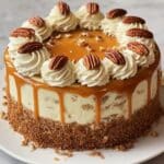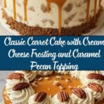 This Caramel Pecan Carrot Heaven Cake is a decadent layered dessert featuring moist carrot cake spiced with cinnamon, nutmeg, and ginger, combined with crushed pineapple and shredded coconut for extra texture. It’s topped with rich cream cheese frosting and a warm, gooey caramel pecan topping that drips beautifully over the sides, creating a perfect balance of sweetness, spice, and crunch. Ideal for fall gatherings or any celebration, this cake delivers comfort and elegance in every bite.