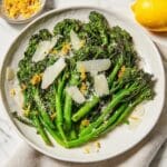 It’s best enjoyed fresh to keep the char and crisp textures intact, but you can prep the broccolini in advance and store it separately. Add the lemon dressing, cheese, and garnishes just before serving for the freshest experience.