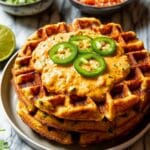 Consider topping the waffles or dip with fresh cilantro or thinly sliced green onions to add a pop of color and a fresh herbal note. A dollop of sour cream or a sprinkle of extra sharp cheddar also complements the richness and heat beautifully.