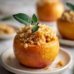 In a small bowl, combine the graham cracker crumbs, melted butter, and brown sugar until crumbly. Sprinkle this crumbly topping generously over each filled apple. Cover the baking dish with foil to keep moisture in, then bake for 25 minutes. After that, remove the foil and bake for another 10–15 minutes until the apples are tender and the crumb topping turns an inviting golden brown.