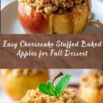 Delight in these Cheesecake-Stuffed Baked Apples, a perfect fall dessert combining tender baked apples with a creamy cheesecake filling. Topped with a crunchy graham cracker crumble and optionally finished with whipped cream and caramel sauce, these stuffed apples offer a warm, comforting treat bursting with sweet and tangy flavors.