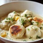 This dish is quite filling on its own, but if you want to round out the meal, a simple green salad with a tangy vinaigrette or steamed green beans provide freshness and crunch that contrast the soft dumplings. Crusty bread is also fantastic for soaking up the extra broth.