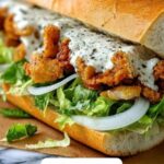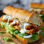 This Chicken Caesar Sandwich recipe offers a quick and easy lunch option featuring crispy pan-fried chicken cutlets, creamy Caesar-style dressing made with a tangy blend of mayonnaise, Greek yogurt, and Parmesan, layered with fresh romaine lettuce, shaved Parmesan, and optional crispy beef bacon and tomatoes, all nestled inside toasted ciabatta rolls for a satisfying, flavorful meal.