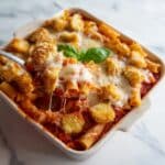 This Chicken Nugget Parm Casserole is a comforting, family-friendly baked pasta dish combining crispy chicken nuggets, tender rigatoni, hearty marinara sauce, and melted mozzarella and Parmesan cheeses. Layered and baked until bubbly and golden, it’s perfect for an easy weeknight dinner or a fun twist on classic chicken parmesan made simple and kid-approved.
