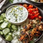 Yes, you can swap chicken for grilled marinated tofu or chickpeas, and replace Greek yogurt with a coconut or cashew-based yogurt for the tzatziki. Don’t forget fresh dill and lemon juice to keep that authentic flavor.