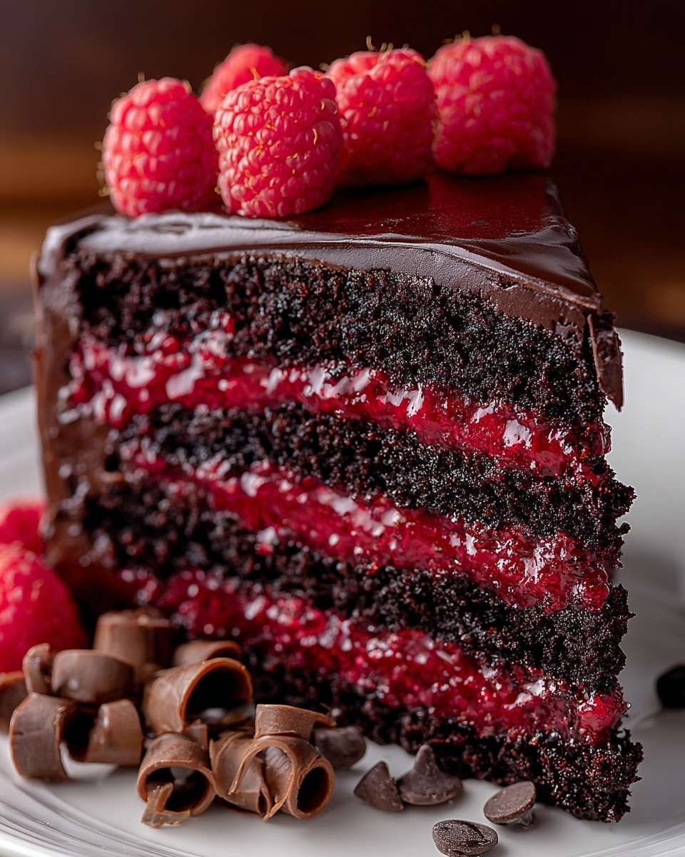Keep your leftover Chocolate Raspberry Cake Recipe covered in the refrigerator to preserve freshness. It will stay moist and flavorful for up to 3 days, making it perfect to enjoy well after the initial indulgence.