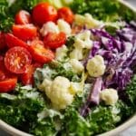 This vibrant Christmas Salad Recipe is best enjoyed fresh and not recommended for freezing, as the texture of the fresh vegetables and creamy dressing changes and can become watery upon thawing.