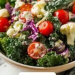- Combine Salad and Dressing: Pour the prepared dressing over the vegetable mixture and toss gently but thoroughly until all pieces are evenly coated with the creamy dressing for consistent flavor in every bite.