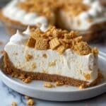 This decadent Cinnamon Toast Crunch Cheesecake combines the nostalgic crunch and cinnamon-sugar flavor of the popular cereal with a rich, creamy cheesecake filling. Featuring a buttery crushed cereal crust and a smooth cinnamon-infused cream cheese layer, this dessert is topped with whipped cream and garnished with extra Cinnamon Toast Crunch for added texture and flavor. Perfect for parties or a special treat, it’s an indulgent dessert that’s as tasty as it is visually appealing.