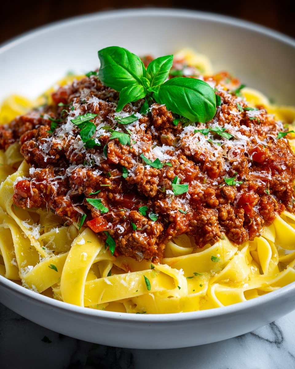 A sprinkle of freshly grated Parmigiano-Reggiano cheese is the classic finishing touch, adding salty umami that complements the rich meat sauce perfectly. Fresh basil or flat-leaf parsley can also be added for a fresh pop of color and herbaceous brightness that contrasts the deep flavors beautifully.