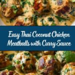 Delicious Thai-inspired coconut chicken meatballs cooked in a rich and creamy coconut curry sauce. These tender meatballs are infused with fresh ginger, garlic, and cilantro, then simmered in a flavorful coconut milk and red curry paste sauce. Perfect as a main course served over rice, quinoa, or sautéed greens, this recipe is easy to prepare and can be adapted to be gluten-free and dairy-free.