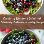 This Cranberry Blueberry Salad with Blueberry Balsamic Dressing is a refreshing and flavorful dish that combines tart cranberries and sweet blueberries with crunchy walnuts and creamy feta cheese. The vibrant dressing, made with honey, olive oil, balsamic vinegar, and Dijon mustard, ties all the ingredients together for a delightful and healthy salad perfect for a light lunch or side dish.