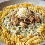 A rich and creamy chicken artichoke pasta featuring tender diced chicken, flavorful artichoke hearts, and a luscious Parmesan cream sauce tossed with al dente fusilli pasta. This quick and satisfying dish is perfect for a comforting weeknight dinner.