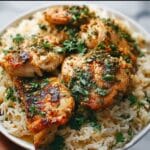 A comforting and flavorful dish featuring tender boneless chicken breasts cooked in a creamy herb sauce, served over fluffy basmati rice. This recipe combines aromatic spices, fresh herbs, and a rich Parmesan-infused cream sauce to elevate a simple chicken and rice dinner into a delightful meal perfect for any occasion.