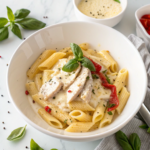 A final sprinkle of fresh basil leaves brings a bright, herbal lift and a pop of color that makes the dish truly inviting. Don’t underestimate how much fresh herbs can transform your finished dish—basil is the perfect partner for this creamy Italian chicken pasta recipe.
