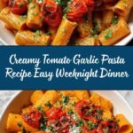 Before serving, garnish with freshly grated Parmesan, additional parsley, and a pinch of black pepper for that final burst of flavor and visual appeal. This Creamy Tomato Garlic Pasta Recipe is ready to delight your taste buds!