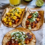 While fresh is always best for tacos, you can freeze the seasoned but uncooked salmon fillets before preparing if you want to get ahead. Wrap them well and freeze for up to 1 month. Avoid freezing the salsa or assembled tacos as the texture will suffer upon thawing.