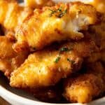 Firm white fish like cod, haddock, or tilapia are ideal because they hold up well during frying and pair nicely with the crispy coating. Avoid very delicate fish that can fall apart easily.