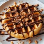 This funnel cake is best enjoyed hot from the pan with the chocolate still slightly warm. Serve it fresh for the full crispy and melty experience.