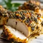 This chicken shines when paired with vibrant roasted vegetables like asparagus or carrots, creamy mashed potatoes, or a fresh green salad tossed with a tangy vinaigrette. The light brightness of the lemon-thyme crust pairs perfectly with sides that are hearty yet fresh.