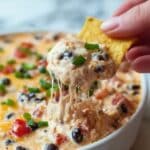 This Crock Pot Chicken Nacho Dip is a warm, creamy, and cheesy dip perfect for gatherings and game days. Featuring shredded chicken, Velveeta, cream cheese, and a blend of flavorful ingredients like Rotel, black beans, jalapeños, and taco seasoning, it offers a deliciously hearty appetizer with a Tex-Mex flair. Easy to prepare in your slow cooker, this dip stays warm for serving and is perfect paired with tortilla chips or used as a topping for nachos.