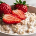 - Serve with Cream and Strawberries: Serve the oatmeal warm, pouring a bit of heavy cream or half-and-half over each serving. Garnish with additional fresh strawberries and cream if desired for extra flavor and presentation.