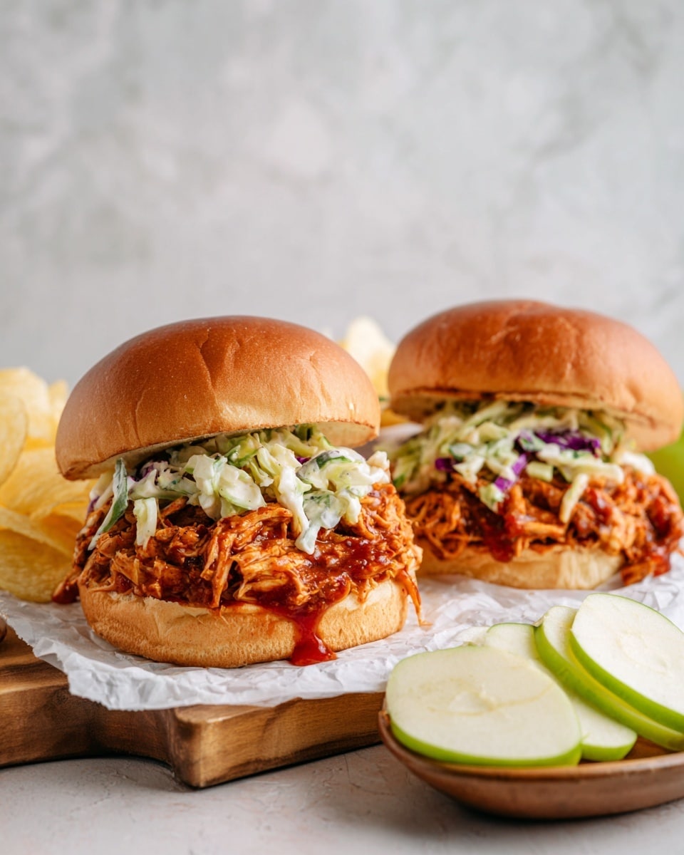 Reheat the pulled chicken gently in the microwave or on the stovetop with a splash of water or reserved sauce to prevent drying out. Warm buns separately to keep them soft and fresh for serving.