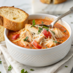 This Crockpot Creamy Chicken Parmesan Soup is a comforting and hearty dish that combines tender chicken, aromatic herbs, Parmesan cheese, and pasta in a rich, creamy tomato broth. Perfect for a cozy meal with minimal effort, it’s cooked slow and low in the crockpot to develop deep flavors, then finished with creamy cheese and pasta for a satisfying bowl.