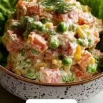 This salad is best served cold or at room temperature, so reheating is unnecessary. Simply take it out of the fridge a few minutes before serving to let it come to a pleasant eating temperature without losing its creamy charm.