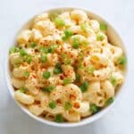 Just before serving, sprinkle a little extra paprika over the top along with freshly sliced green onions. These simple garnishes add a pop of color and freshness that take this dish over the top.