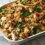 10. Finish Baking: Remove the foil and continue baking uncovered for an additional 10–15 minutes, or until the stuffing topping is golden brown and crispy.