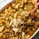 Serve the bake directly from the casserole dish for a cozy, family-style meal. Alternatively, plate individual servings with a drizzle of pan juices or a dollop of sour cream to elevate the presentation. For a festive touch, sprinkle toasted pecans or dried cranberries over the stuffing for added texture and a subtle sweet contrast.